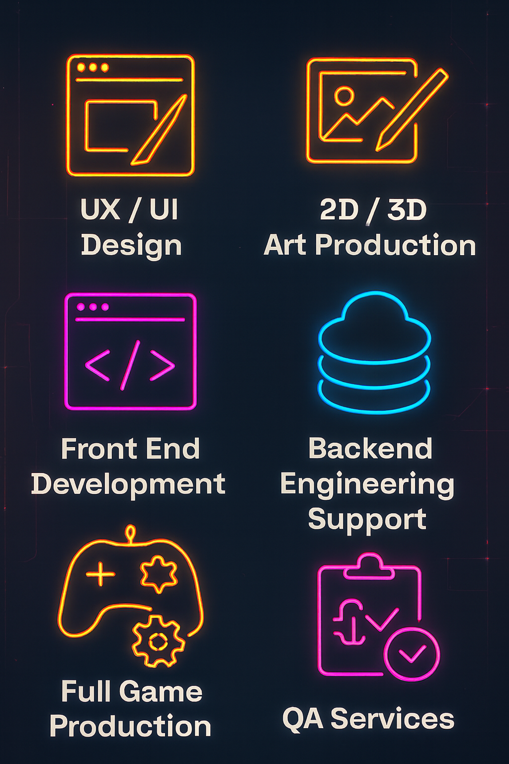 We offer a range of services to meet the needs of multiplayer game projects in any phase of development. Our growing team of 20+ developers has full stack capabilities and experience building full game apps for our clients, embedding with large project teams and everything in between. Have something else in mind? Past projects include UX design for AI data visualization, UEFN custom games, gamification consulting and real money games.